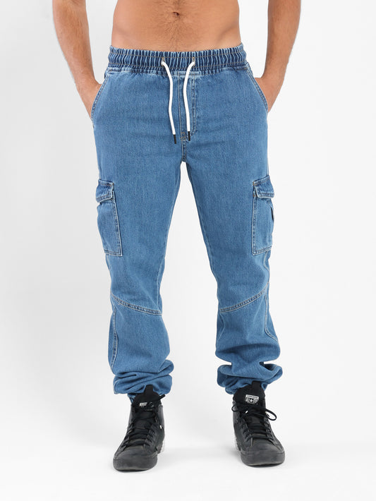 Loose Fit Denim Cargo Pants - Outlet