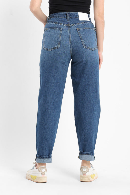 Mid-Rise Straight Fit Jeans with Side Stripe