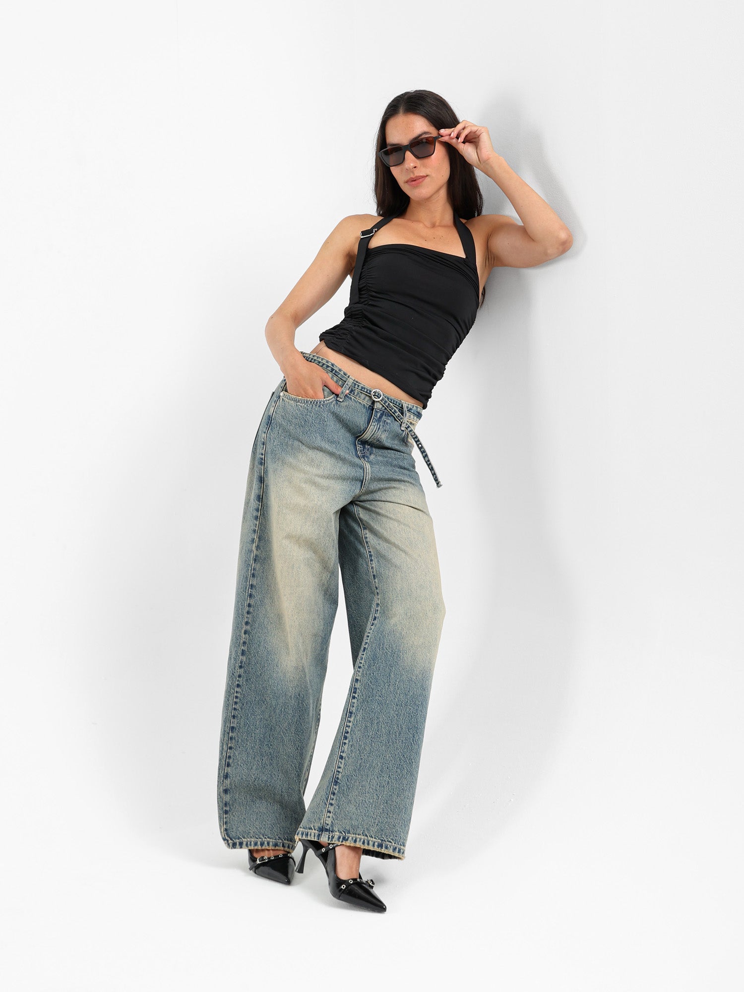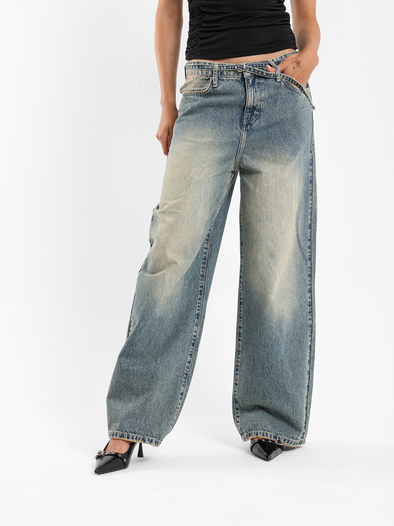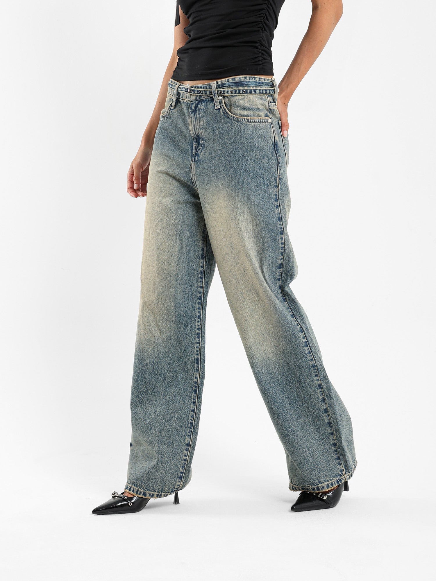 Balloon Jeans with Thin Denim Belt