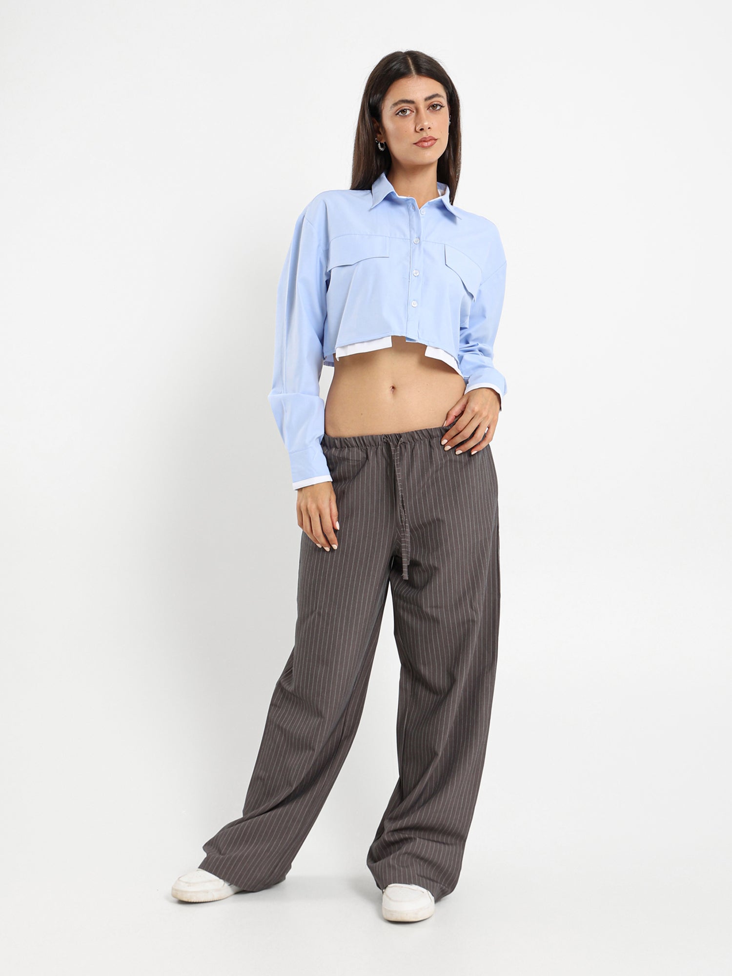 Cropped Contrast Fabric Shirt