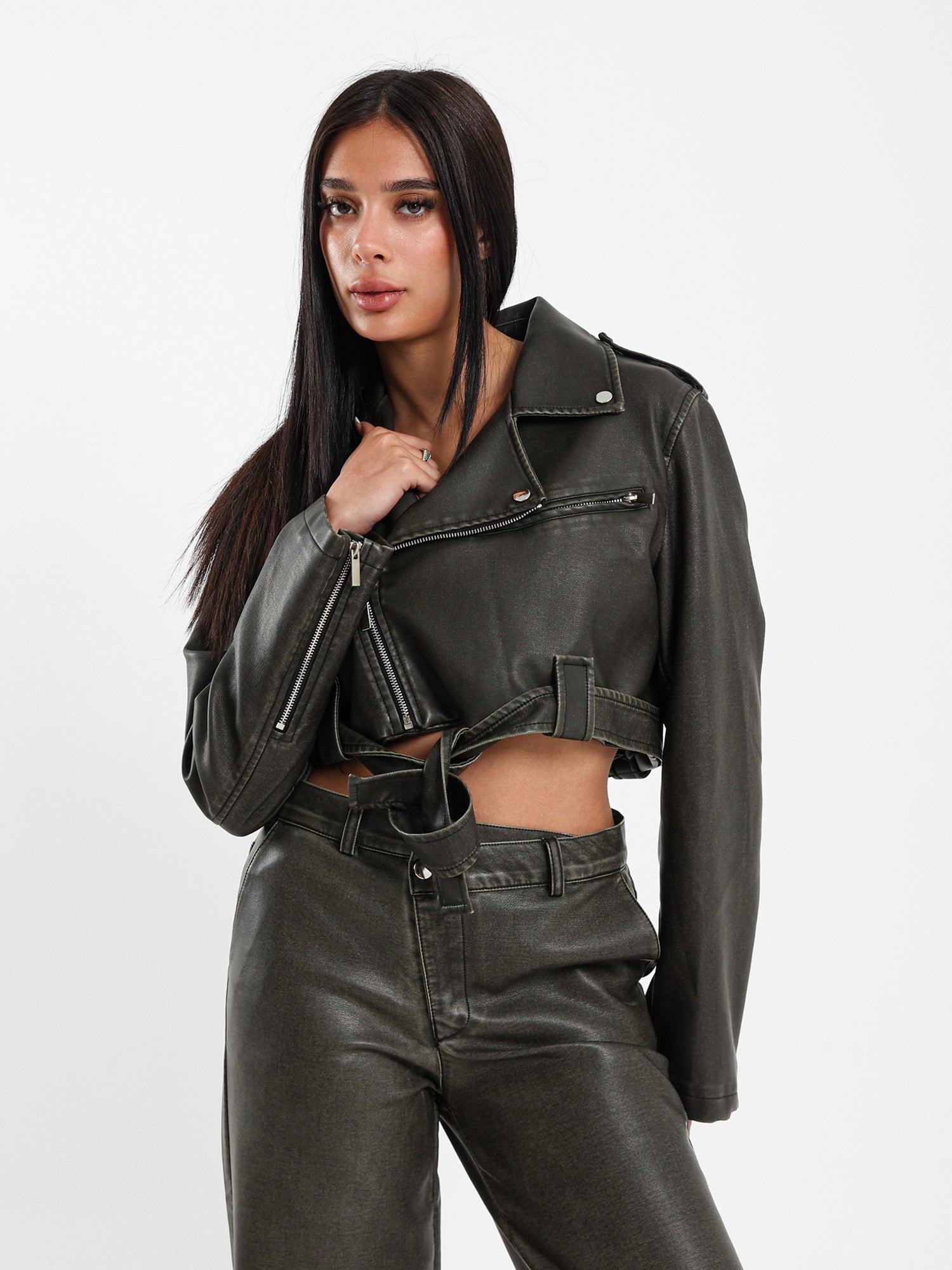 Cropped Leather Biker Jacket