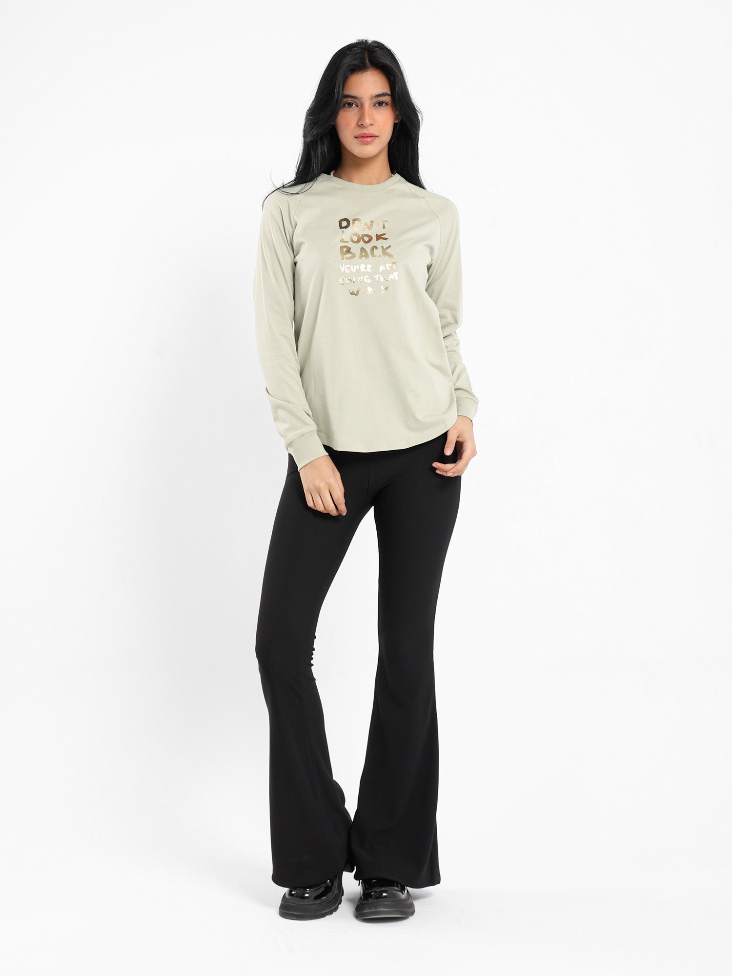 "Don't Look Back" Printed Raglan Sleeve T-Shirt