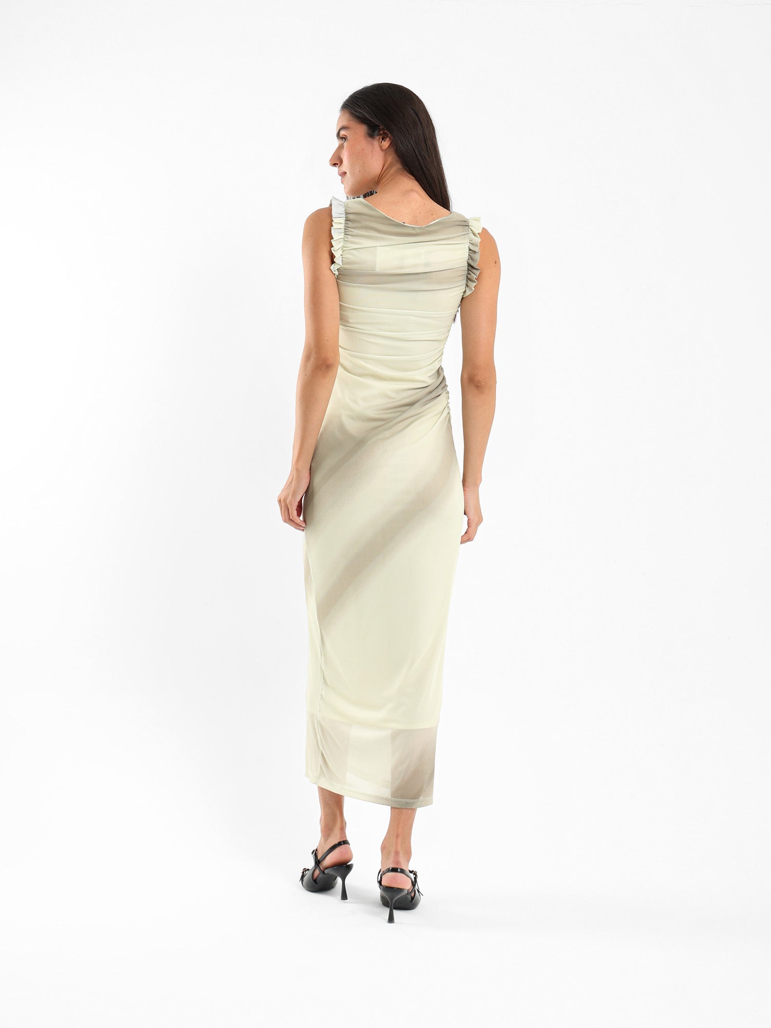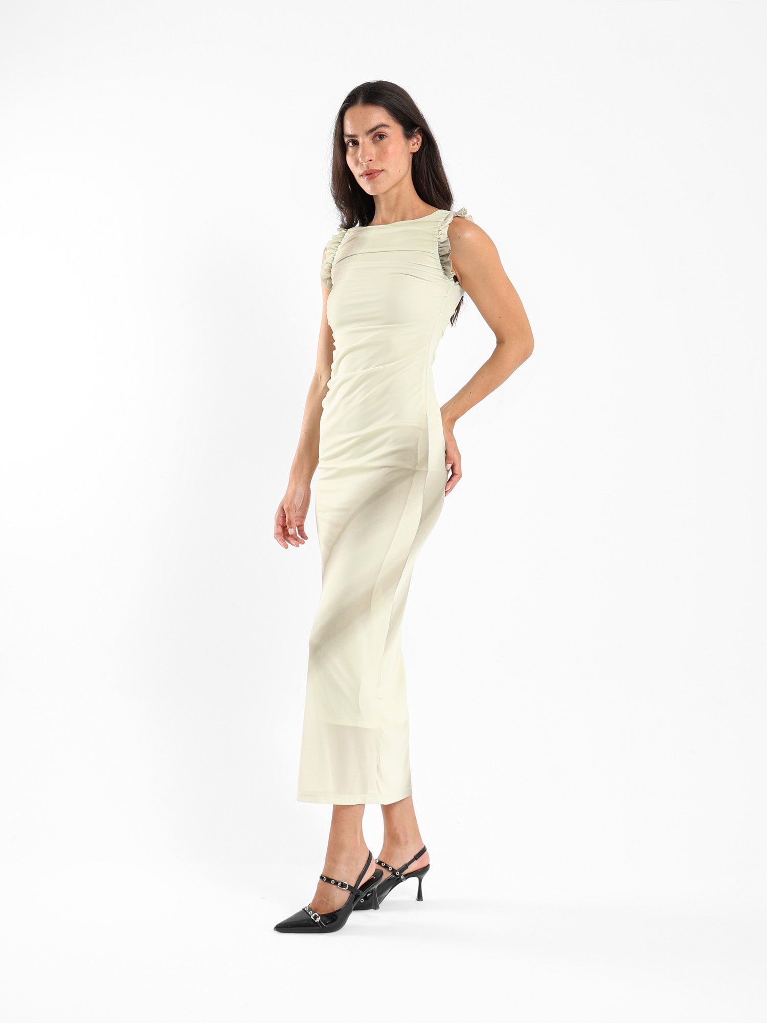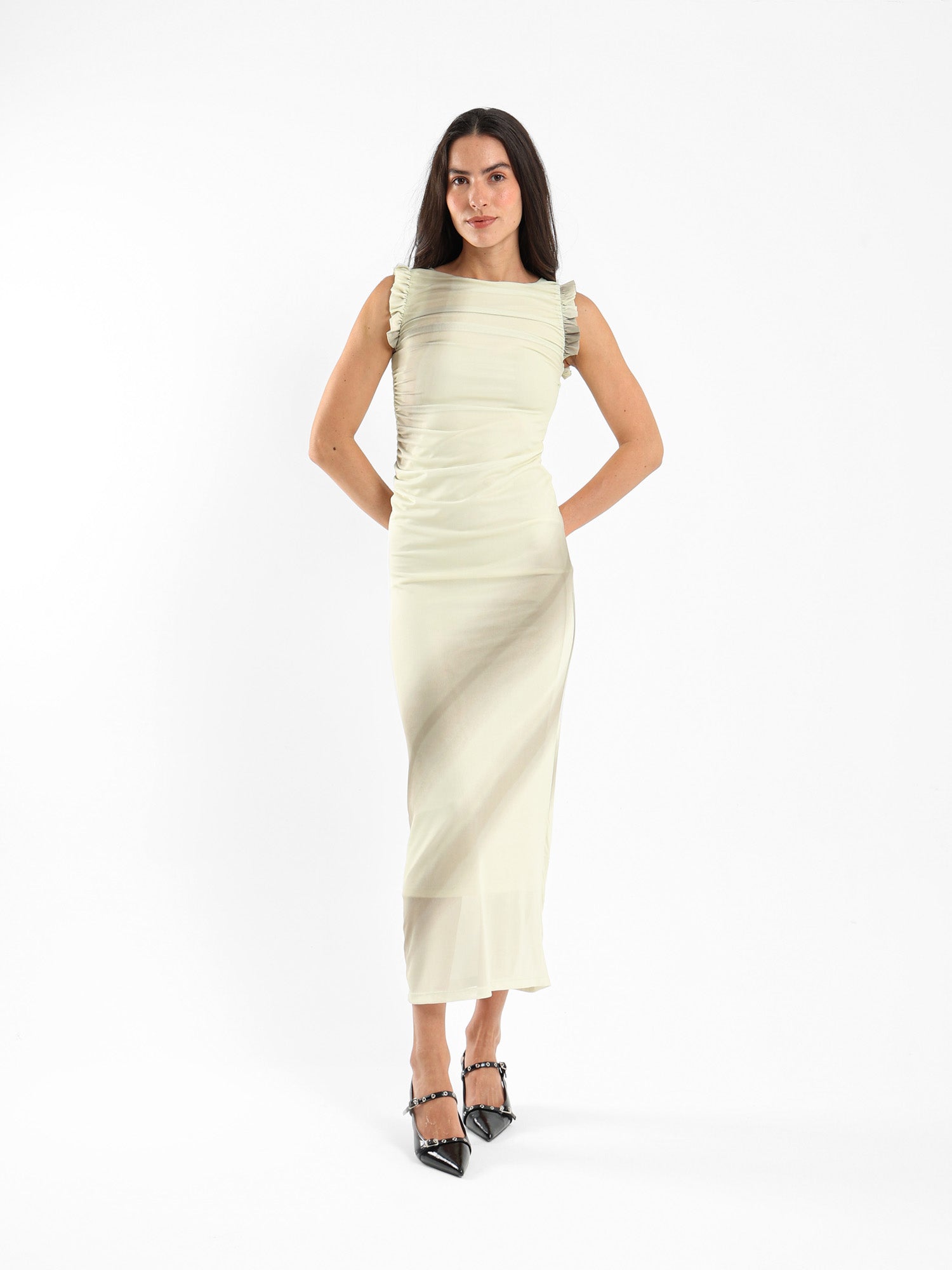 Fitted Sleeveless Dress with Ruffle Sleeves