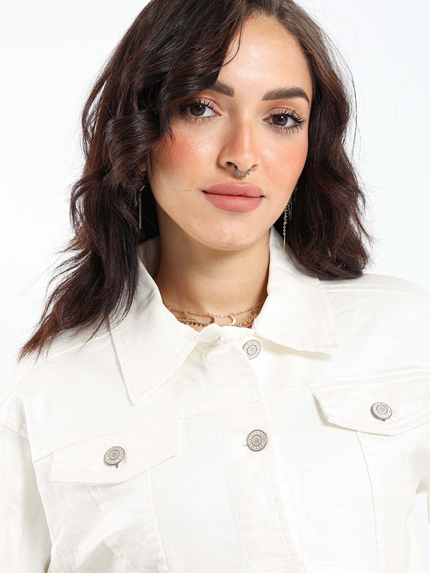 Jacket Metalic Cropped Denim Jacket - Outlet