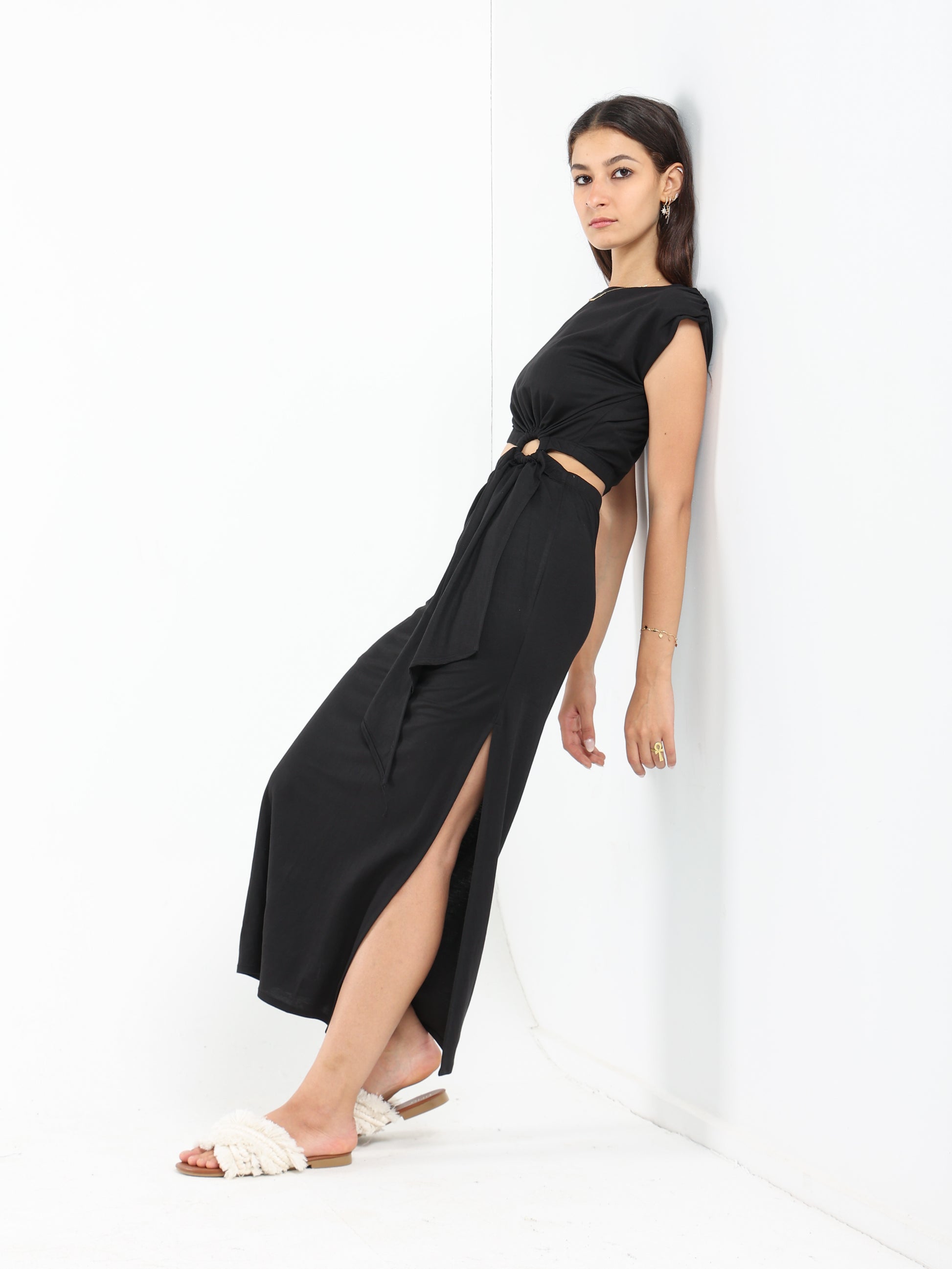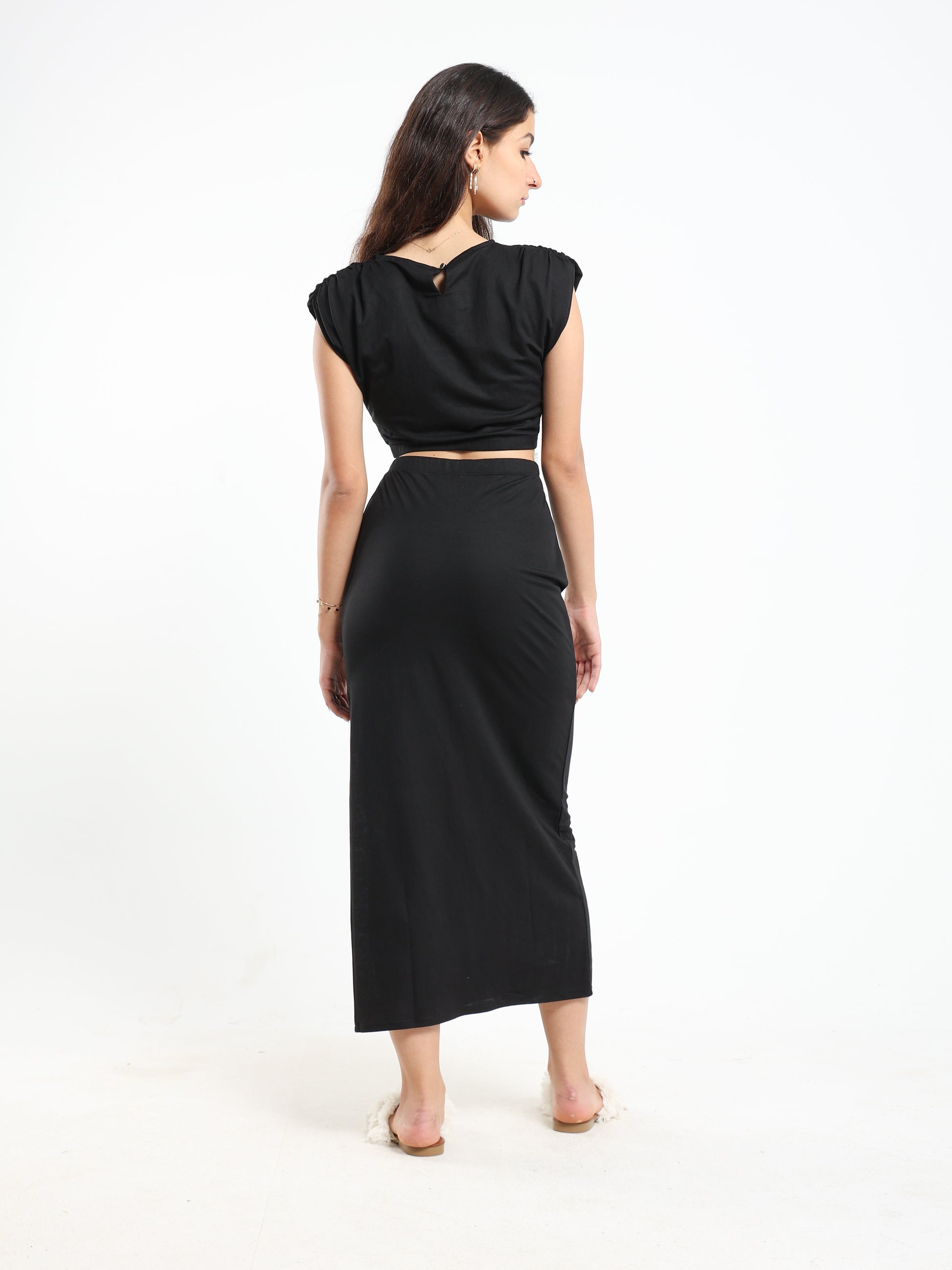 Maxi Dress with Padded Shoulders and Side Slit - Outlet