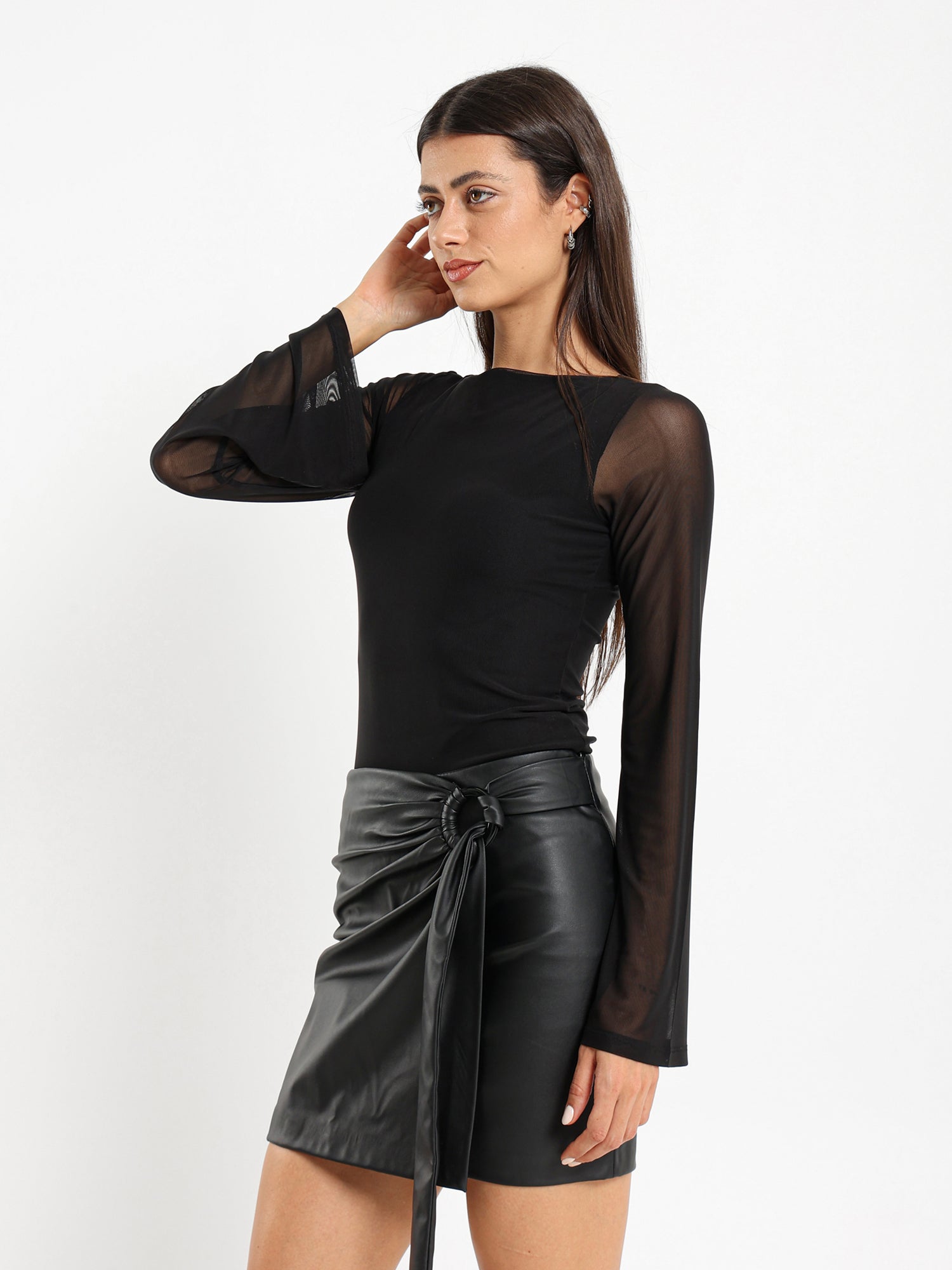Mesh Backless Long Sleeve Top