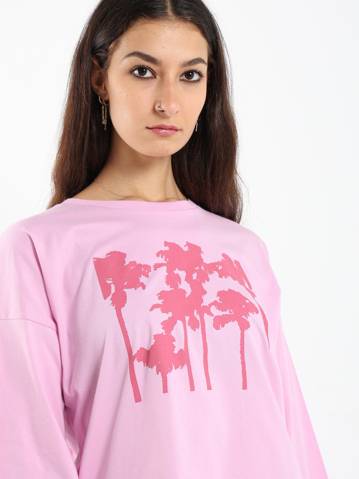 Palm Trees Print Ls Tshirt
