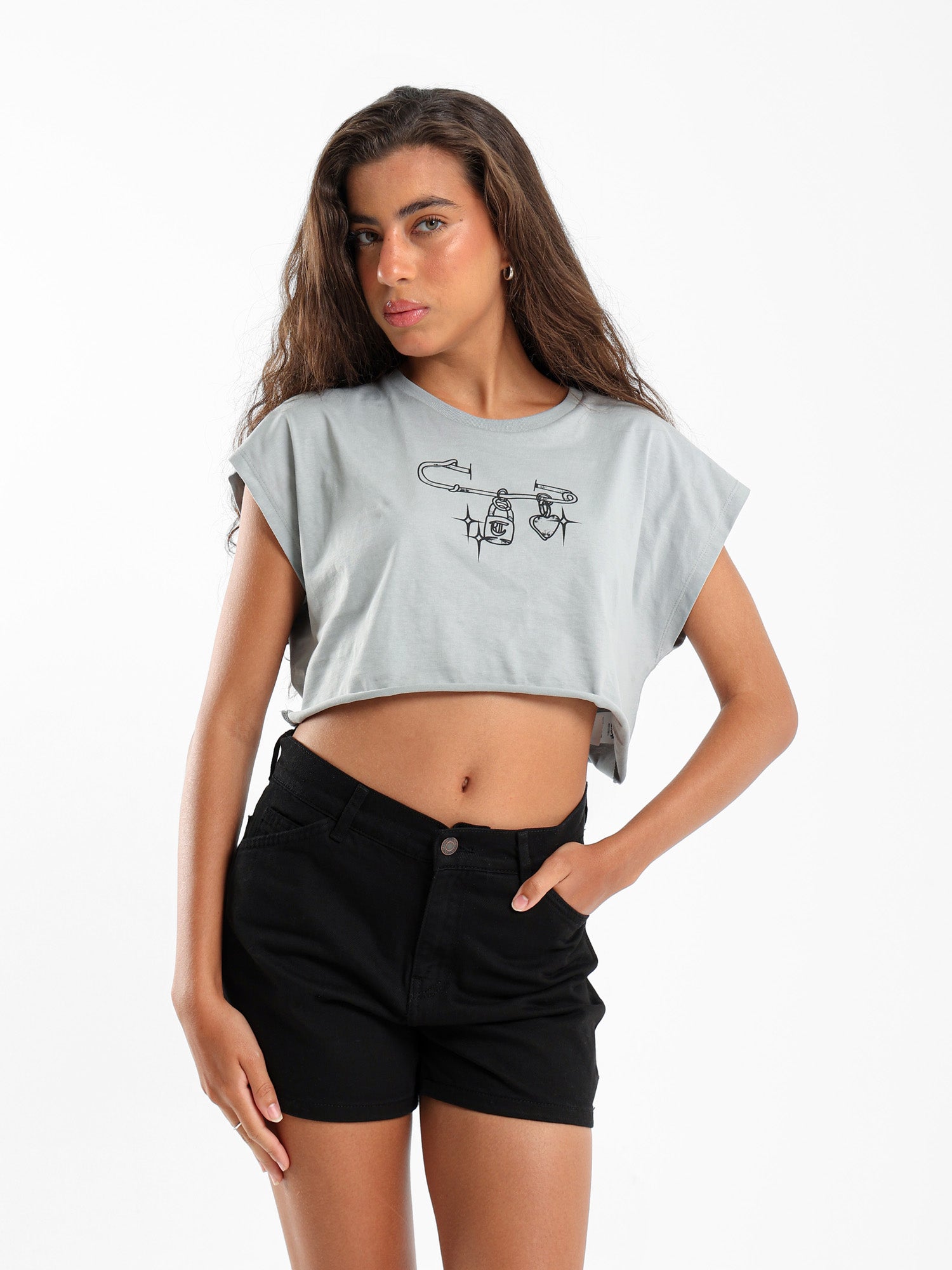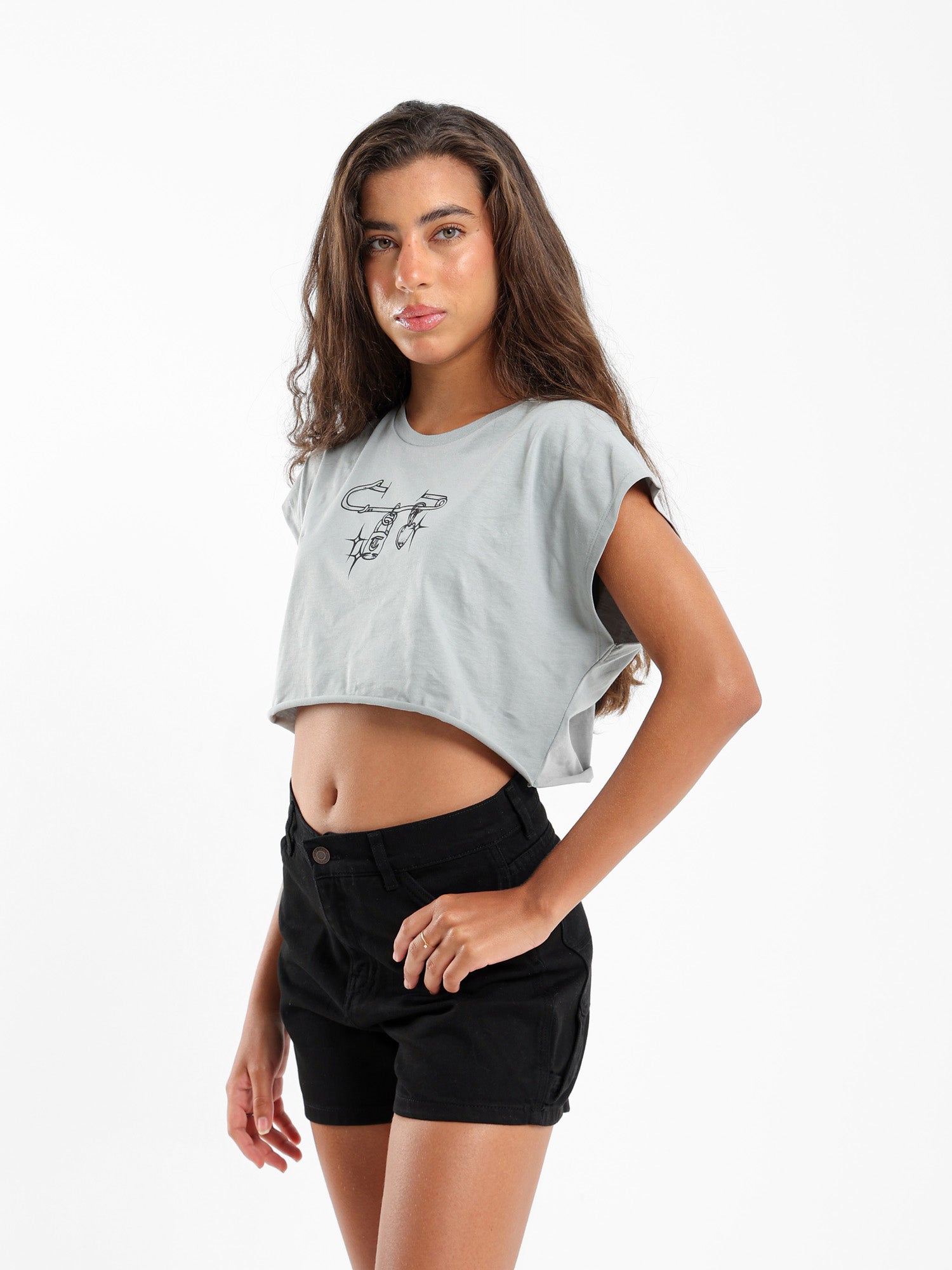 Pin Print Cropped T-Shirt