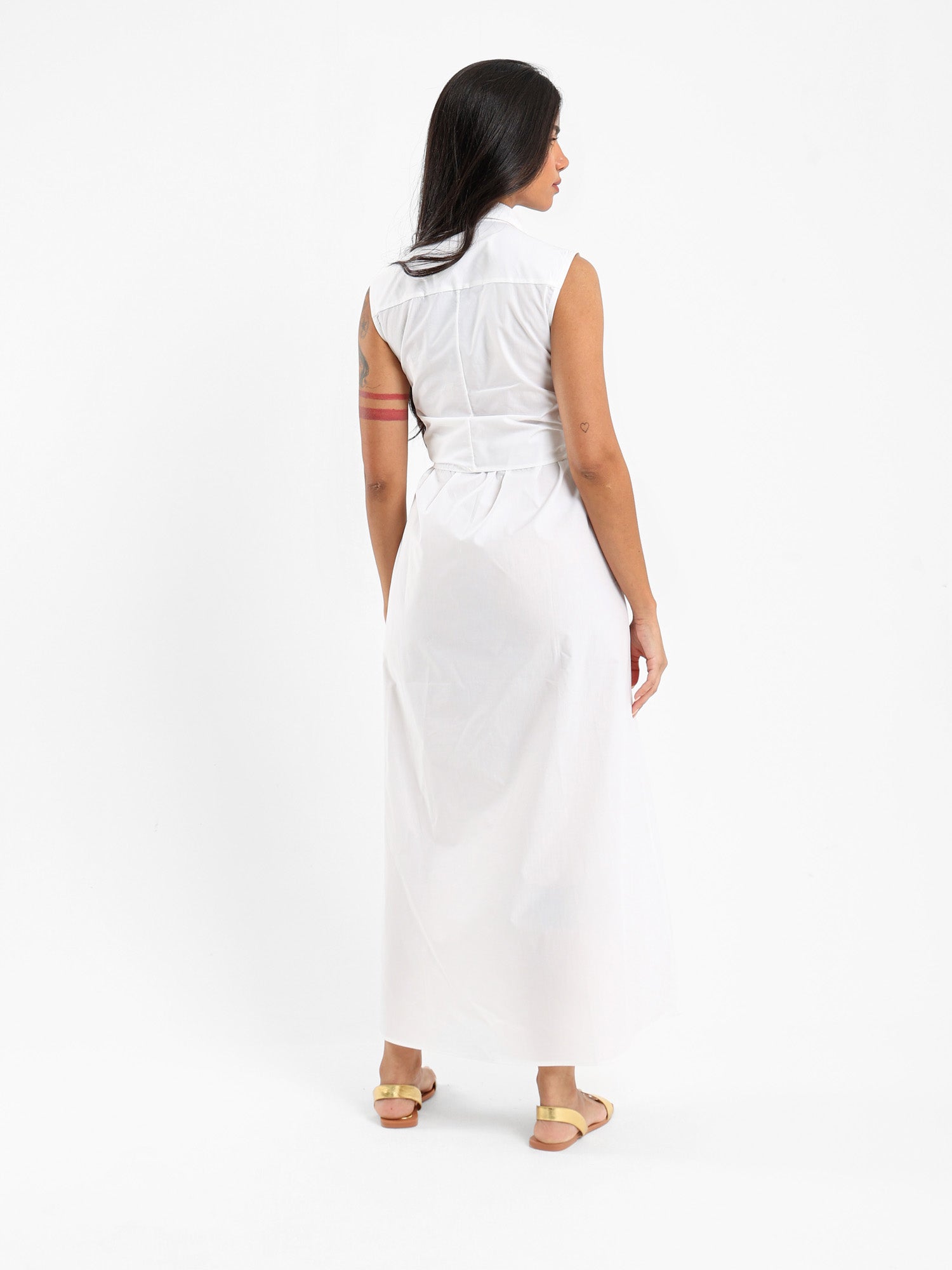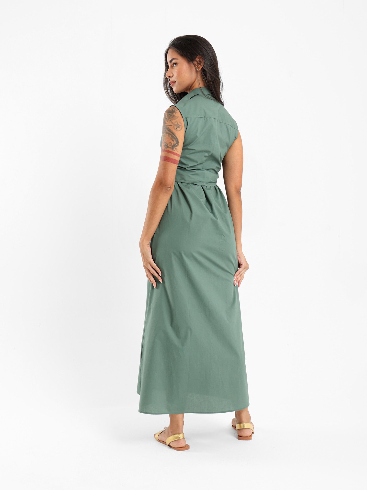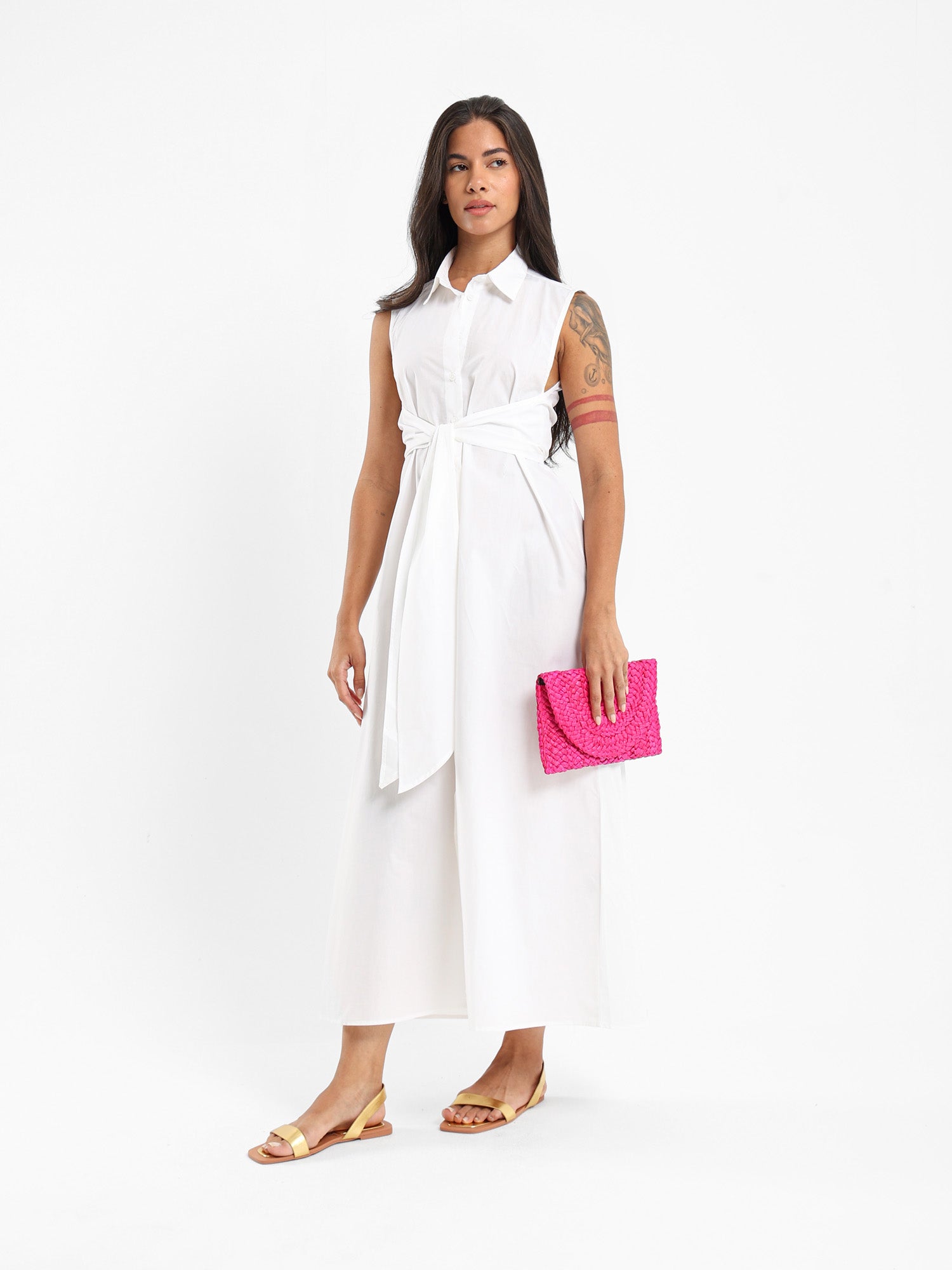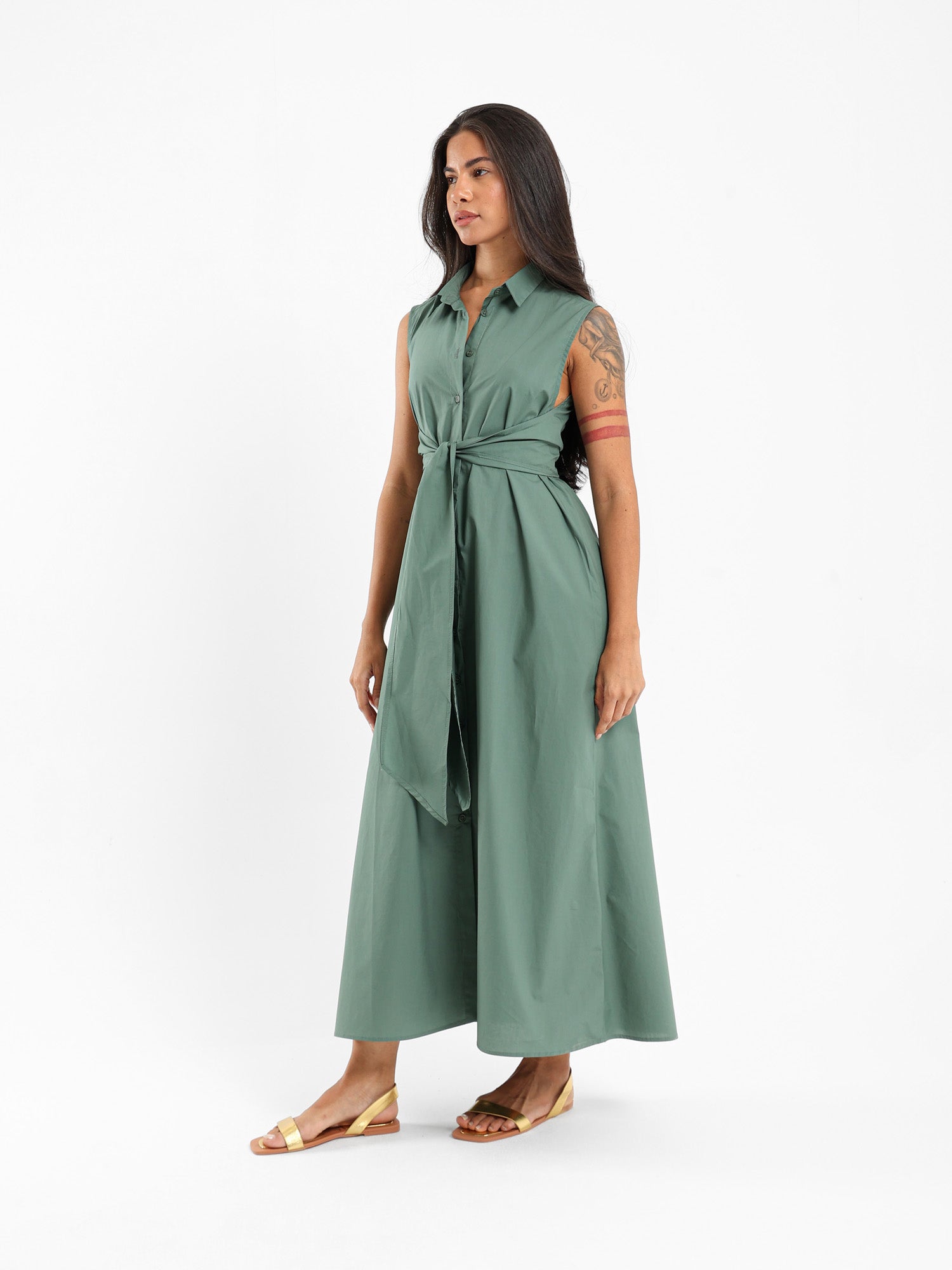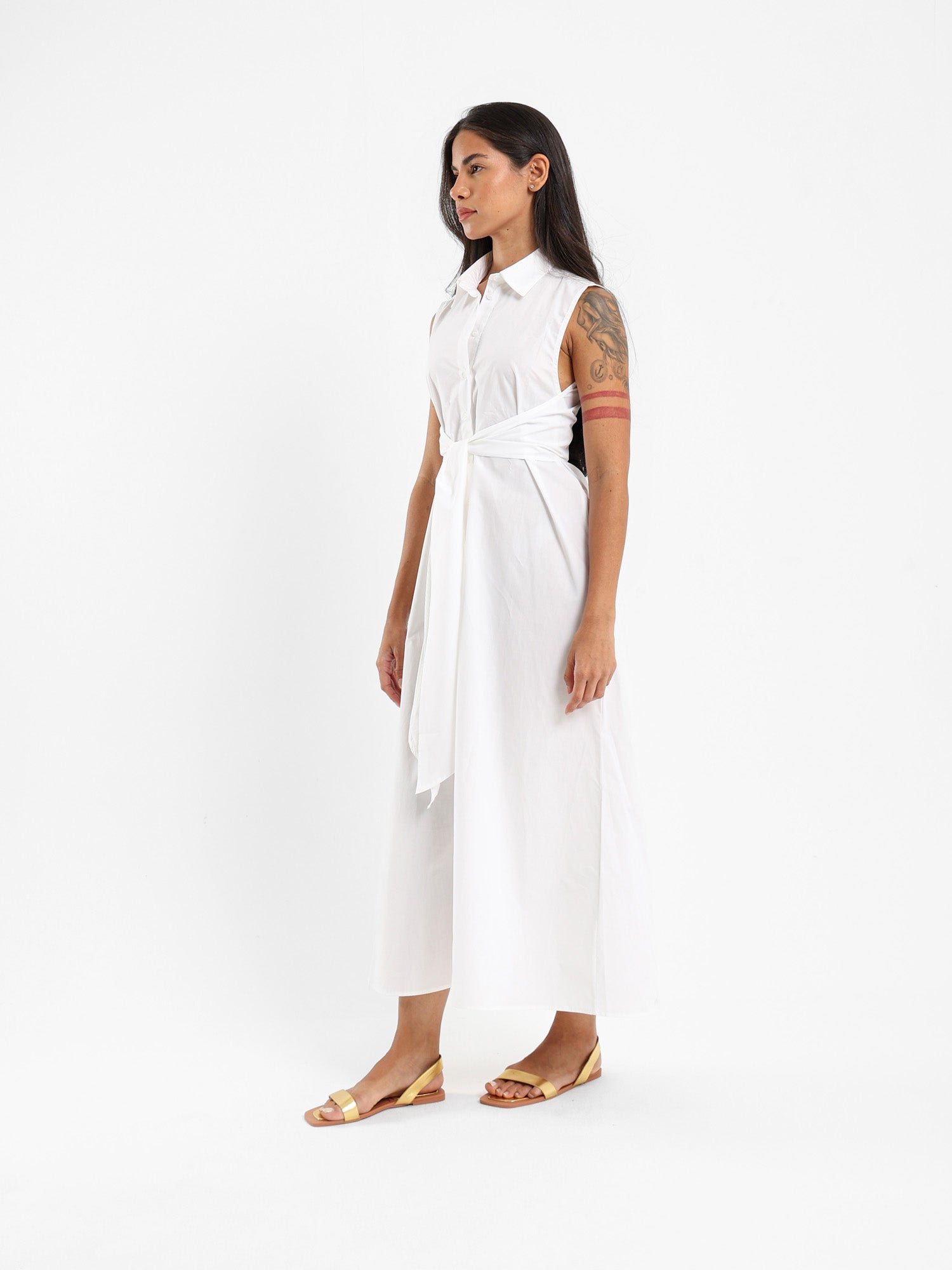 Sleeveless Shirt Dress With Waist Tie