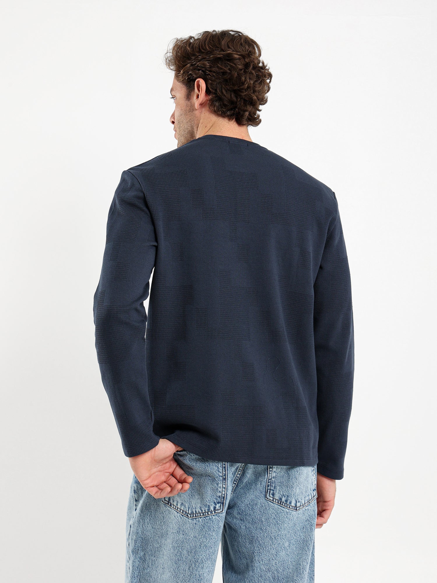 Waffle Grandad Collar Long Sleeve T-Shirt